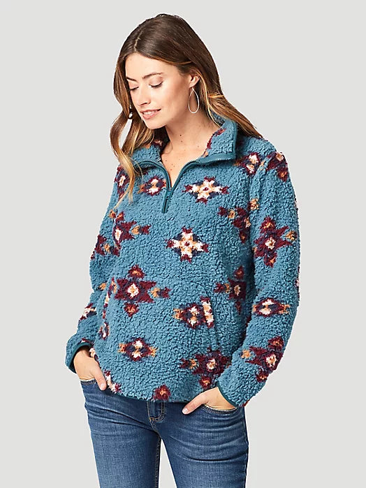 Rock & Roll, Ladies Teal Aztec Sleeve Cable Knit Sweater, BW32T02049