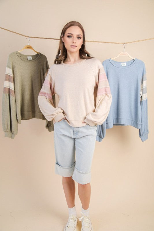 Oversized Color Block Comfy Casual Knit Top - Round Neck - Long Sleeve (Model height: 5"10", wearing a Small