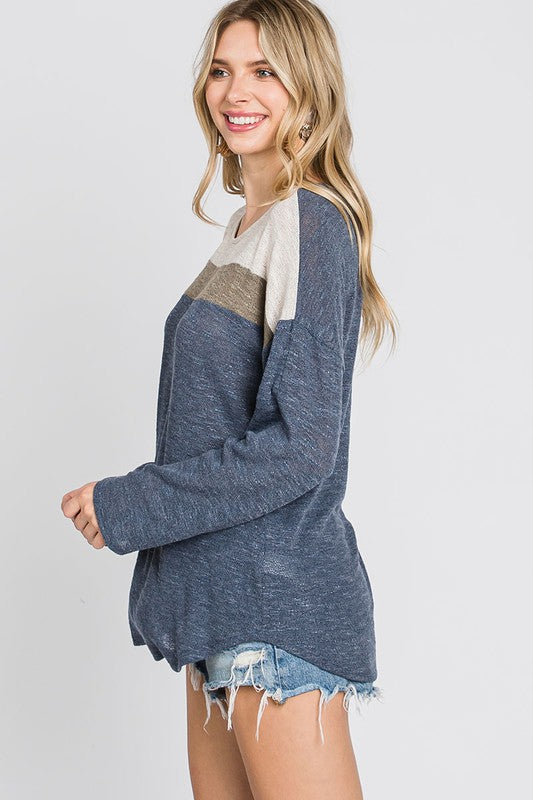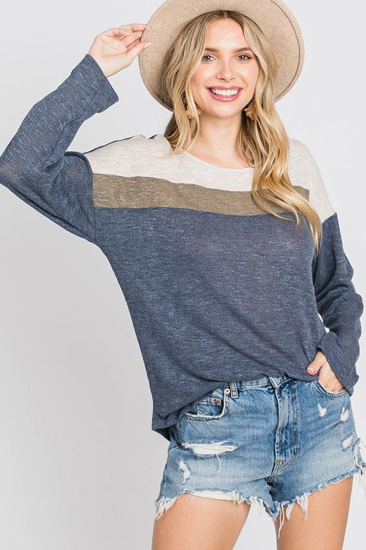 Navy Combo color block dolman long sleeve top