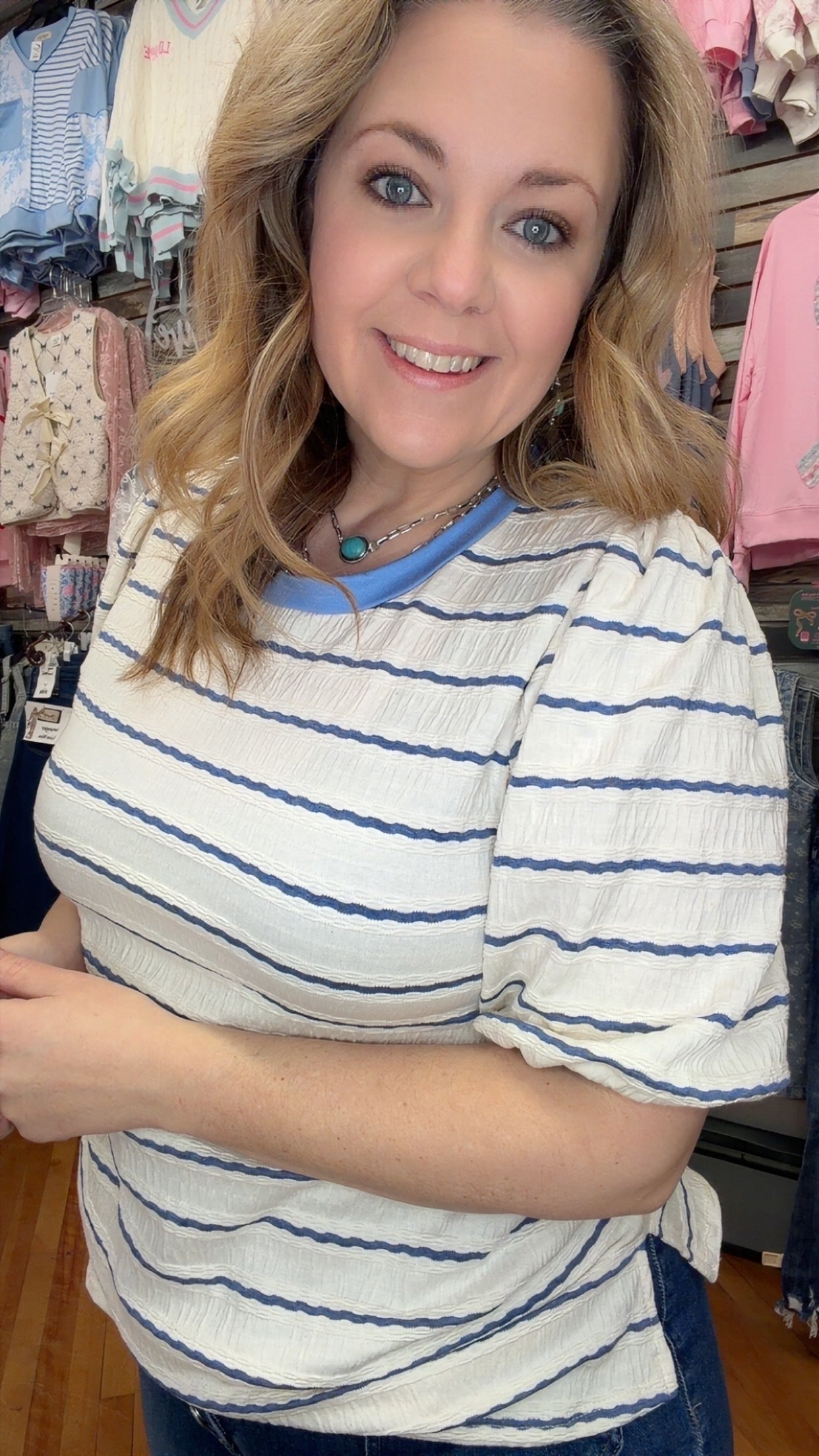Cream and denim top loose fit