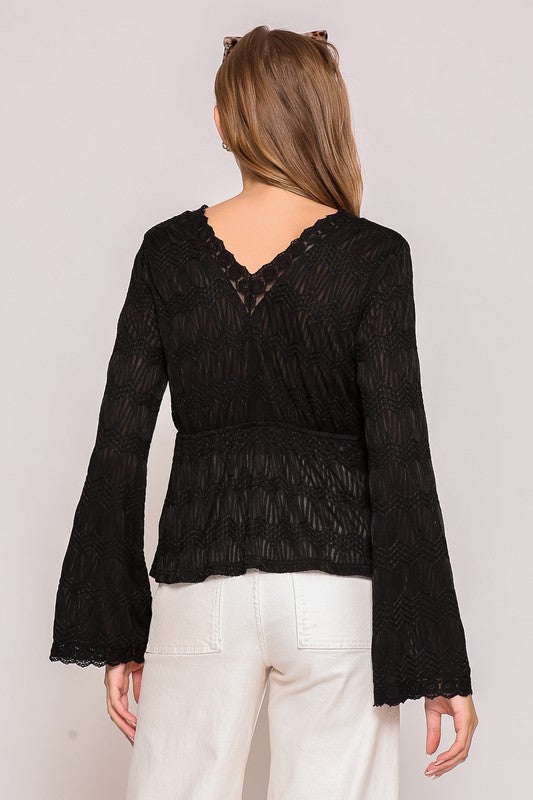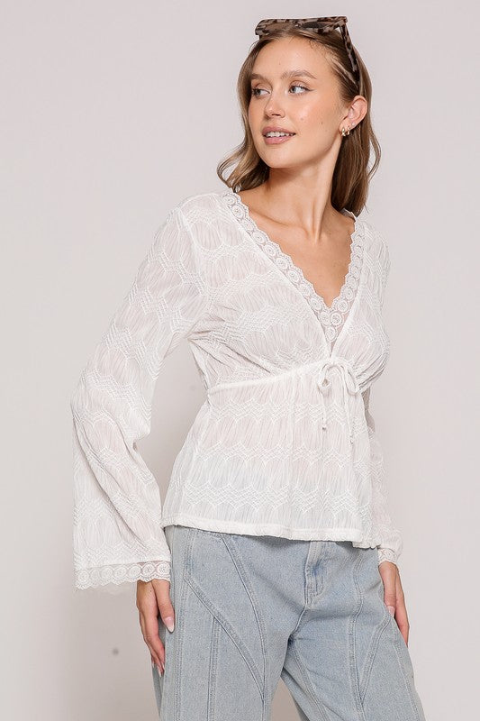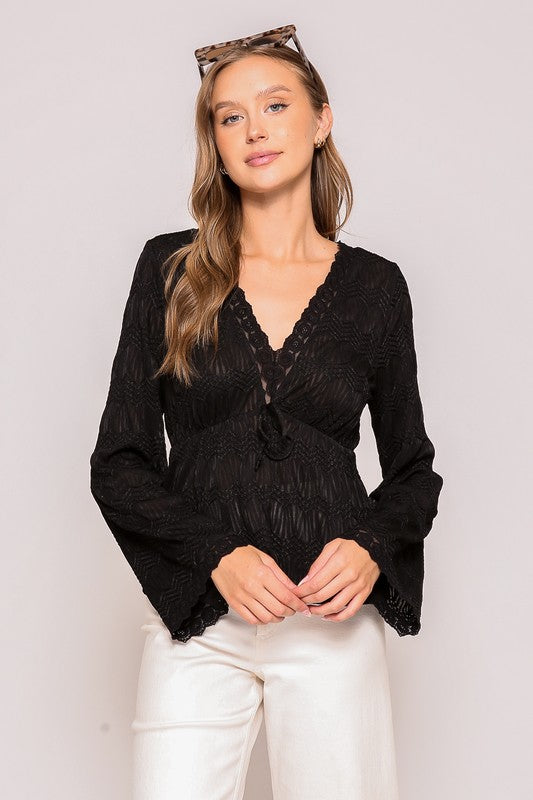 v-neck top, creating a stylish and feminine look perfect for any occasion.