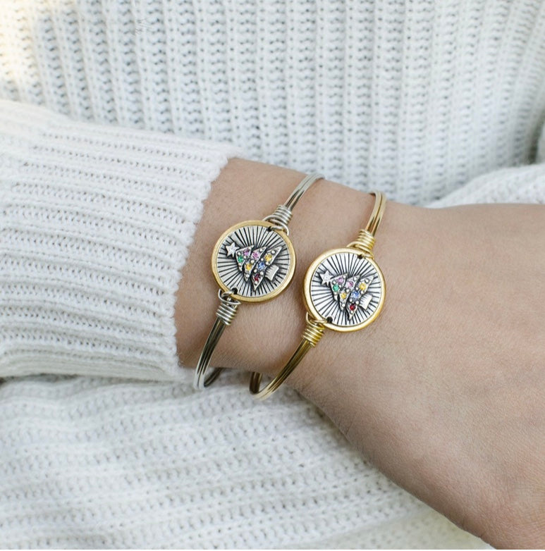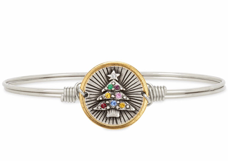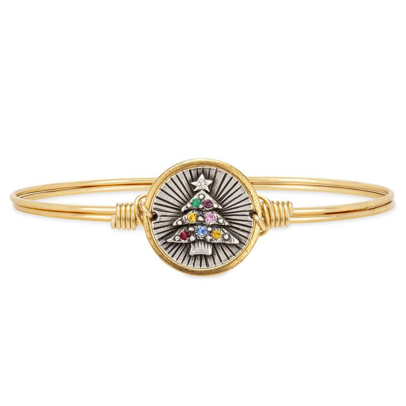 Channel perennial good vibes in this ever-thriving symbol of the season. Every detail shines in our limited-edition holiday tree bangle complete with sparkling multicolored ornaments.
