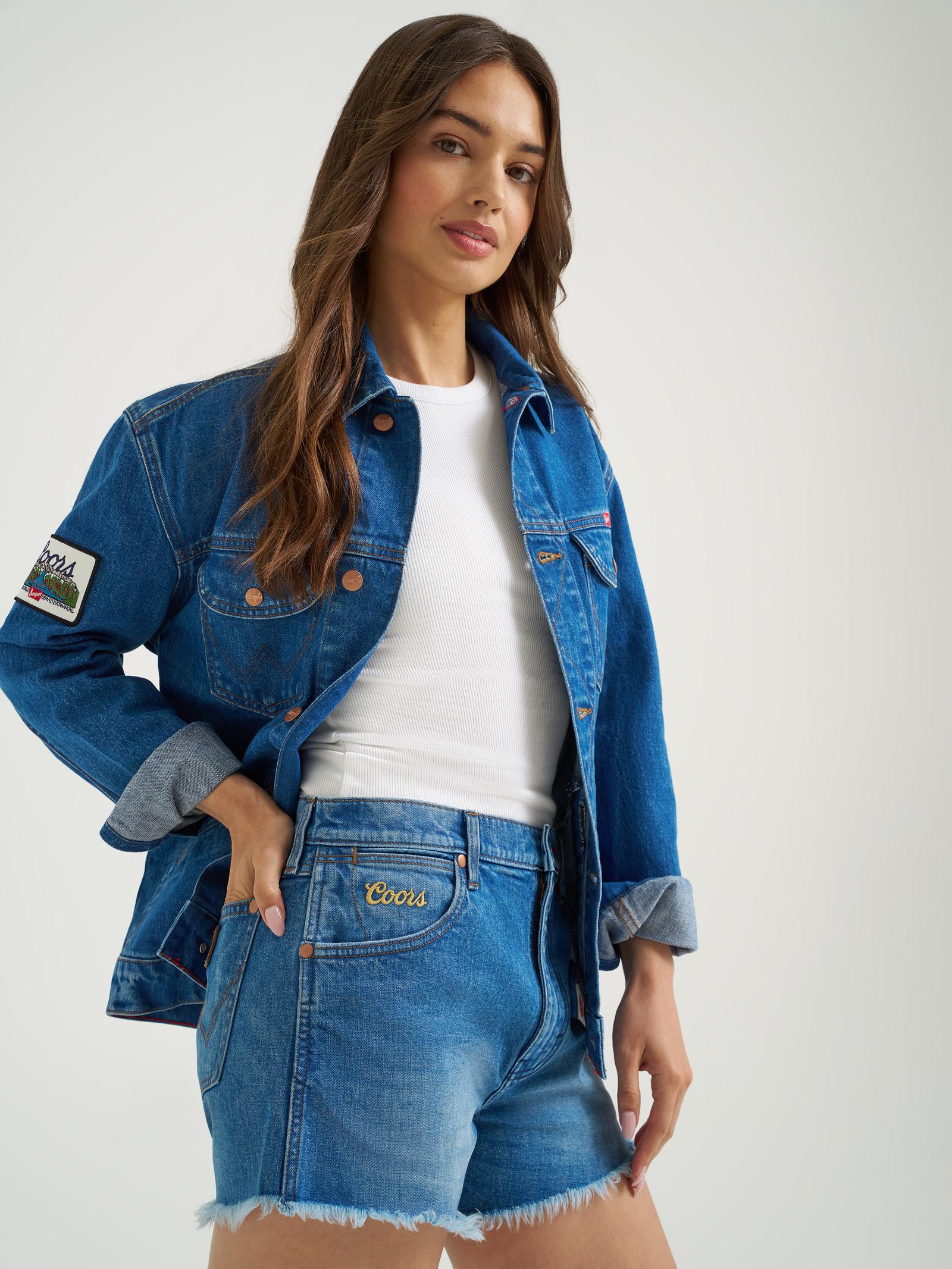 Brewed with a beautiful golden blue wash, the Wrangler® x Coors® Reworked Short will be your go-to pair for sunny-day adventures. Mimicking the look and feel of vintage cutoffs, they’re made of a perfect cotton blend with just a hint of stretch and an unfinished hem. You’ll recognize all of the icons, including our five-pocket styling, the ‘W’ stitching, copper hardware, and a rope logo patch. Toasting the moment, we added in some Coors embroidery at the coin pocket, a Banquet label, and a collaborative print on the inner pocket bag.