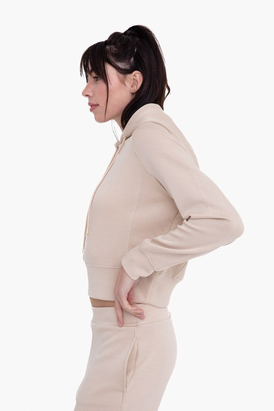 Elevate your wardrobe in this buttery smooth cropped hoodie pullover.