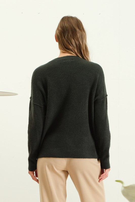 CREWNECK LONG SLEEVES FRONT SEAM DETAIL SOLID PULLOVER KNIT SWEATER SWEATSHIRT 65% ACRYLIC, 30%POLYESTER, 5%SPANDEX