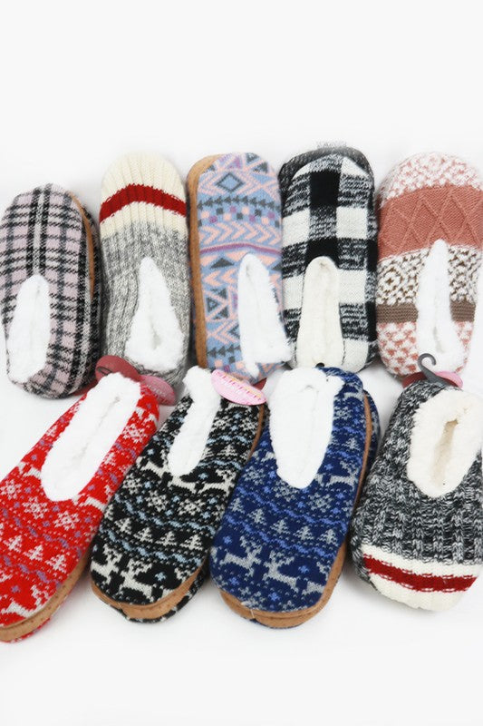 Woven Assorted Non-Slip Winter Indoor Slipper -Anti-Skid House Shoes -One Size