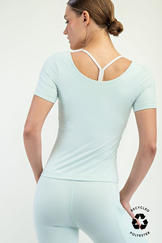 A basic short sleeve top, perfect for layering or wearing on its own. Designed for casual, everyday comfort and effortless style. Features: - Reg/Curvy Size - Recycled butter soft fabric - 4-way stretch - Slim fit - Basic style - Short sleeve - Round neckline