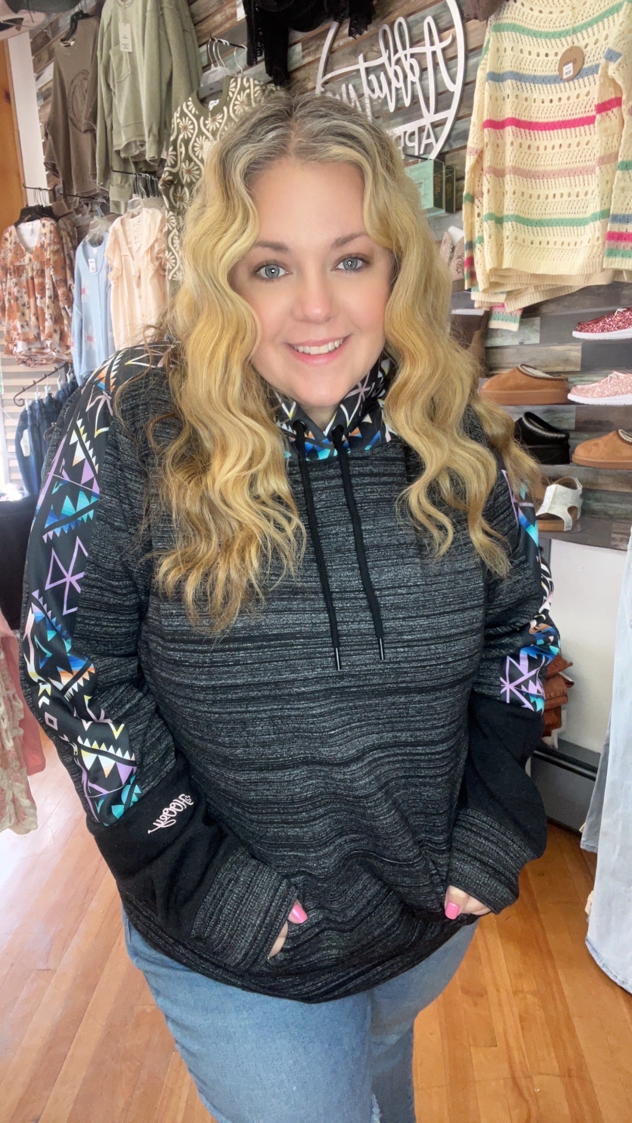 - Black Hoody w/ Aztec Pattern on Sleeves & Hood