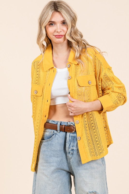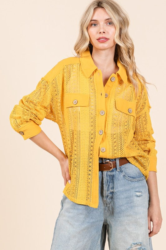 Yellow WOMEN'S CROCHET BUTTON DOWN SHIRt