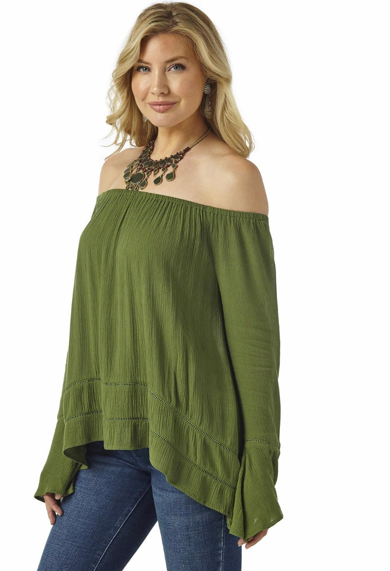 Off Shoulder Peasant Shirt with Handkerchief Hem and Bell Slee