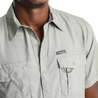 Regular Fit, Wicking, UPF 30, Utility Loop, Dual Front Pockets with Flaps and Snap Close, Side Entry Pocket with Velcro Close, Glasses Cleaner at Bottom Hem.