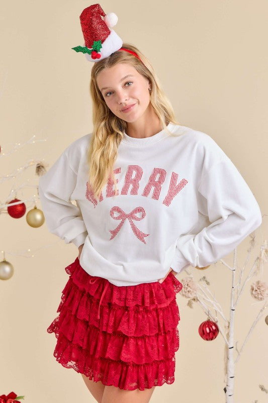 holiday sweatshirt, Christmas sweater, merry sweatshirt, bow pullover,