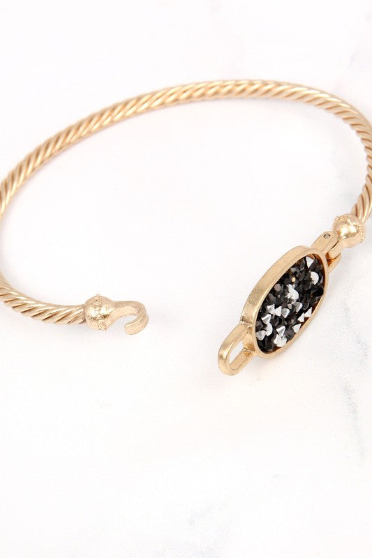 Black rhinestone glitter oval gold cuff bracelet.