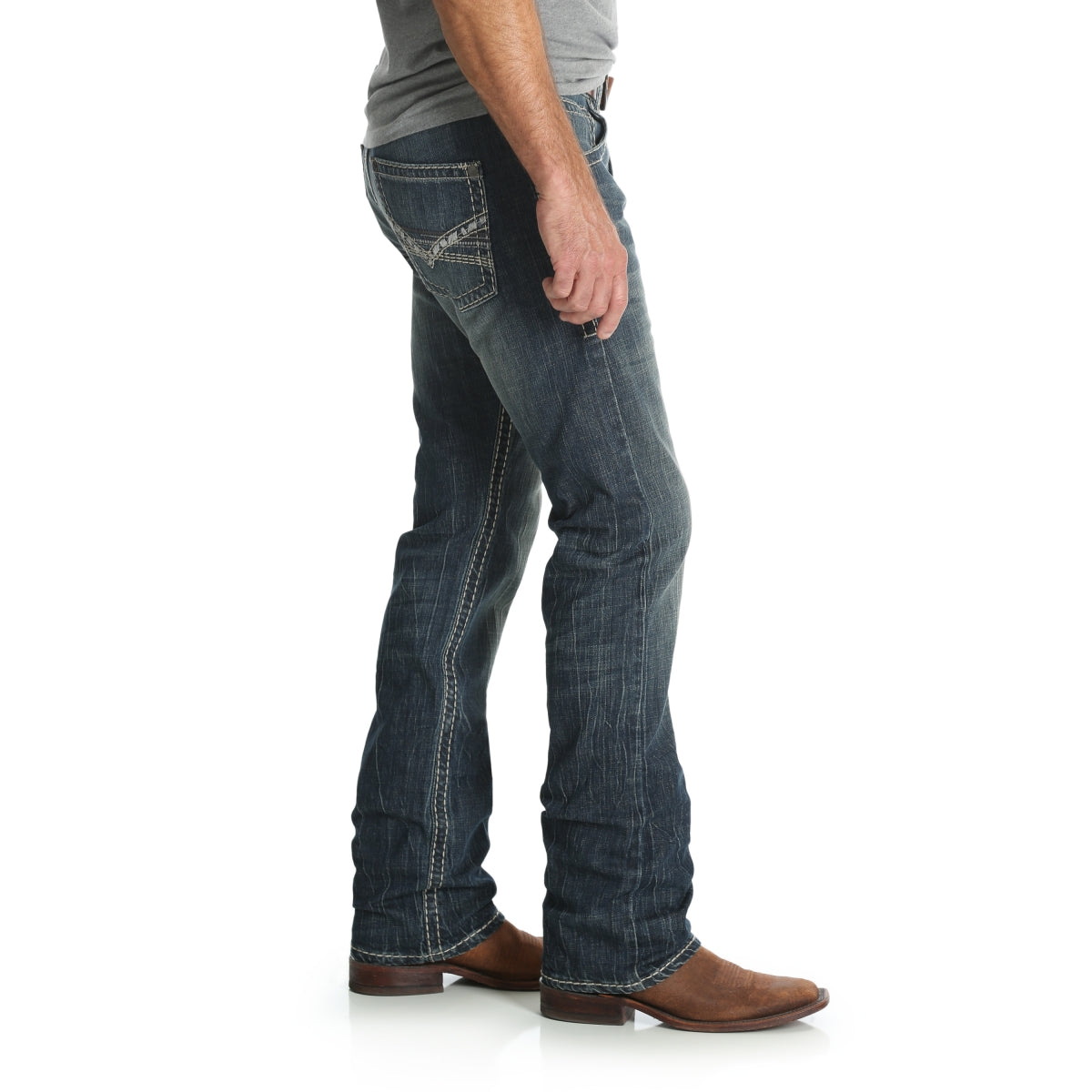 Rock 47® Denim by Wrangler® Slim Fit Straight Leg Jean, Sits Lower on Waist, Slim Seat, Thigh and Knee, Boot Cut.