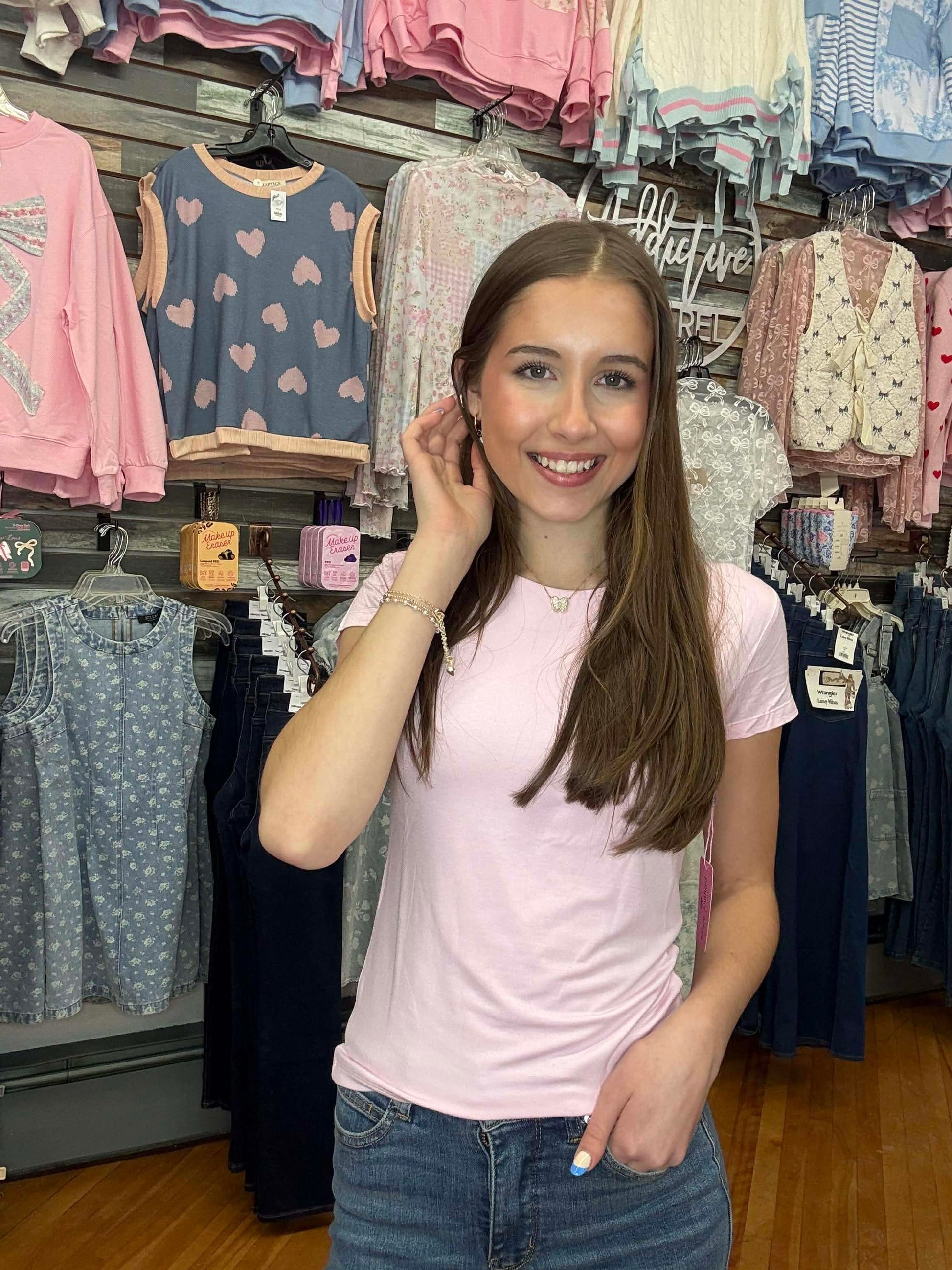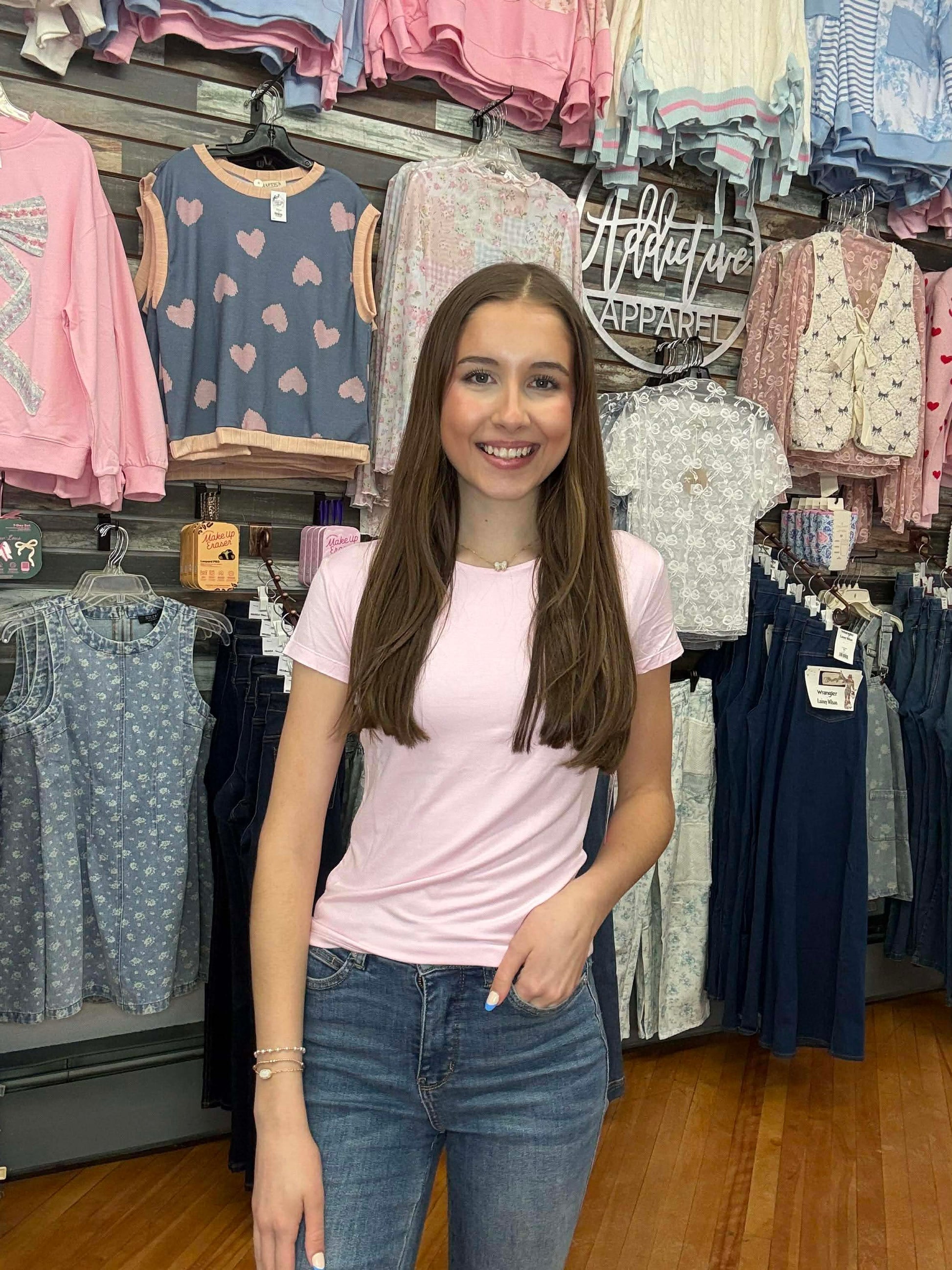 This incredibly soft and comfortable tee features double layered fabric, a scoop neck and a short sleeve. Made of 95% viscose and 5%elastane.