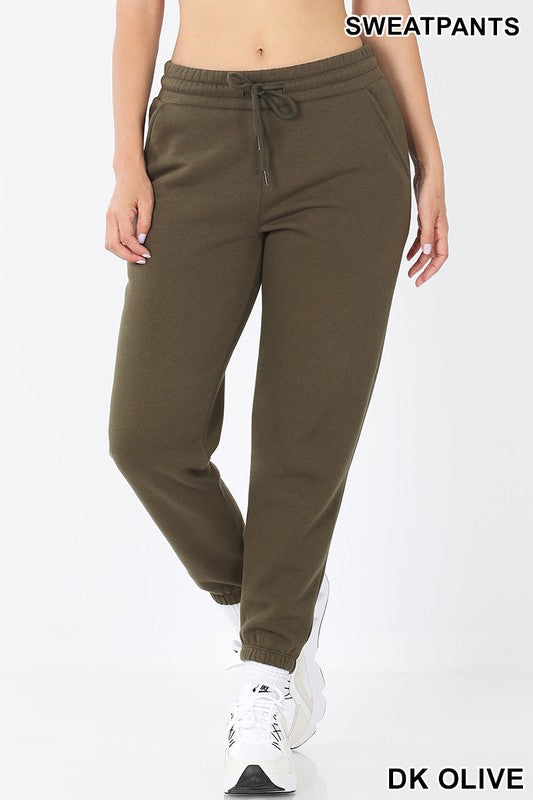 Jogger sweatpants with a elastic waistband, side pockets, functioning drawstrings and a elastic band hem.
