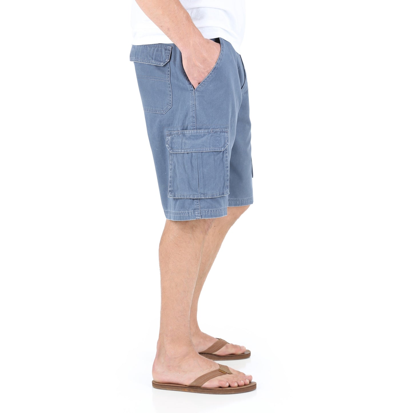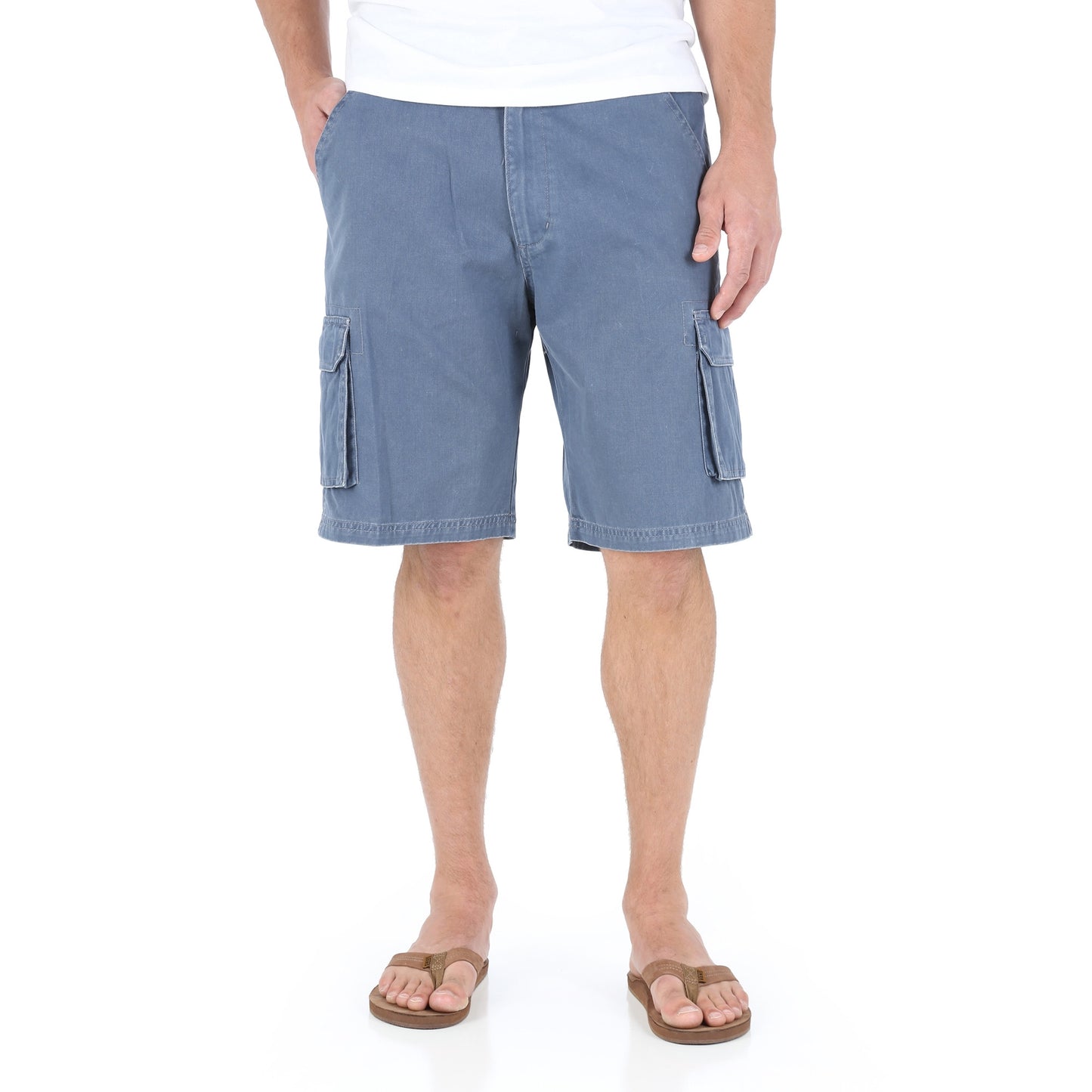 These Wrangler Shorts Sit Just Below Waist. Loose Seat and Thigh. Hits at Knee. Front Slash Pockets. Side Cargo Pockets with Velcro Flaps. Back Patch Pockets with Velcro Flaps. Hidden Cell Phone Pocket. 10 1/2 inch Inseam.