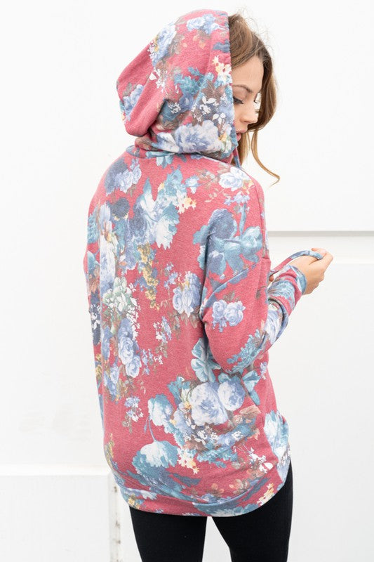 Burgundy floral sweatshirt with a loose fit