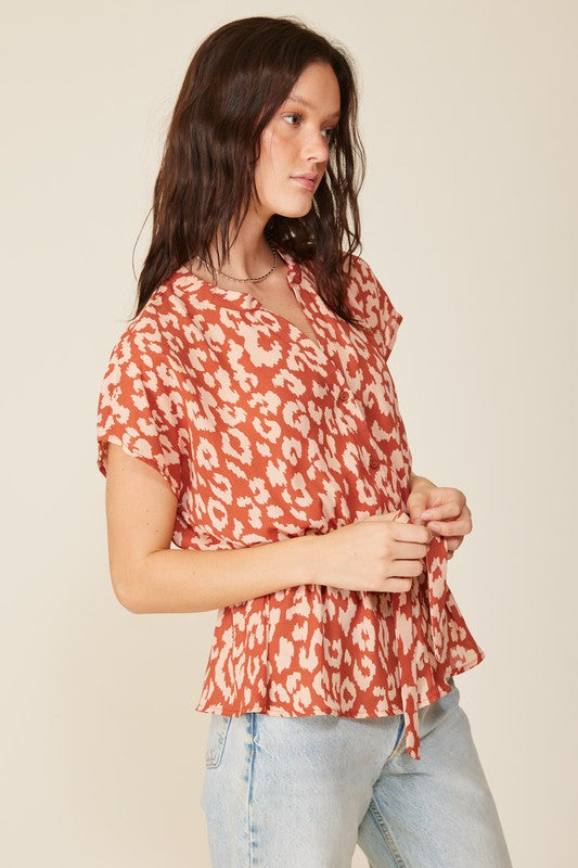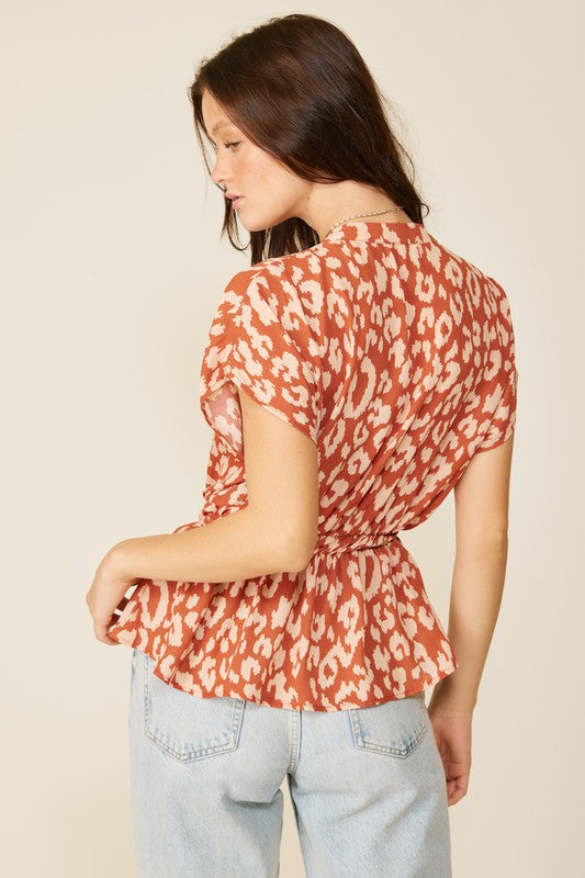 charming piece features a flattering v-neckline and sweet short sleeves,
